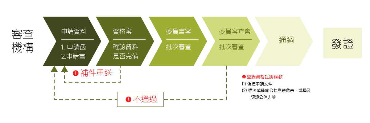 申請時間:不得晚於證書到期後一個月 審查流程:資格審 ▶ 委員書審 |
